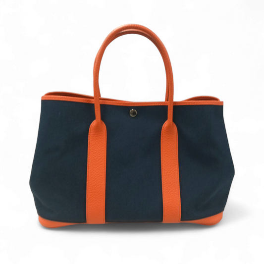 HERMES Tote Bag Navy/Orange X GS 005 HI Garden Party 36 Rank B