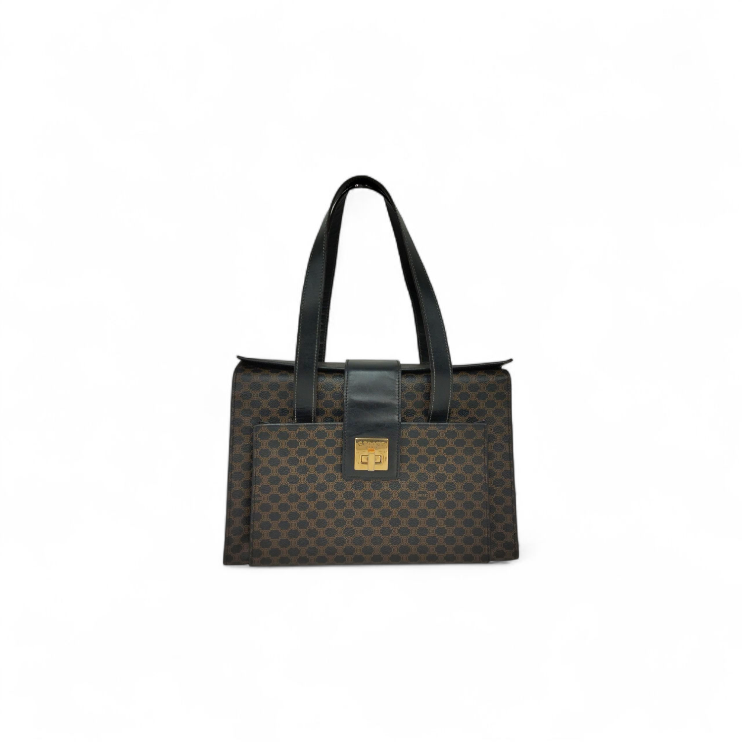 CELINE Shoulder Bag MC97/2 Black and brown Macadam Canvas Vintage Rank (B)