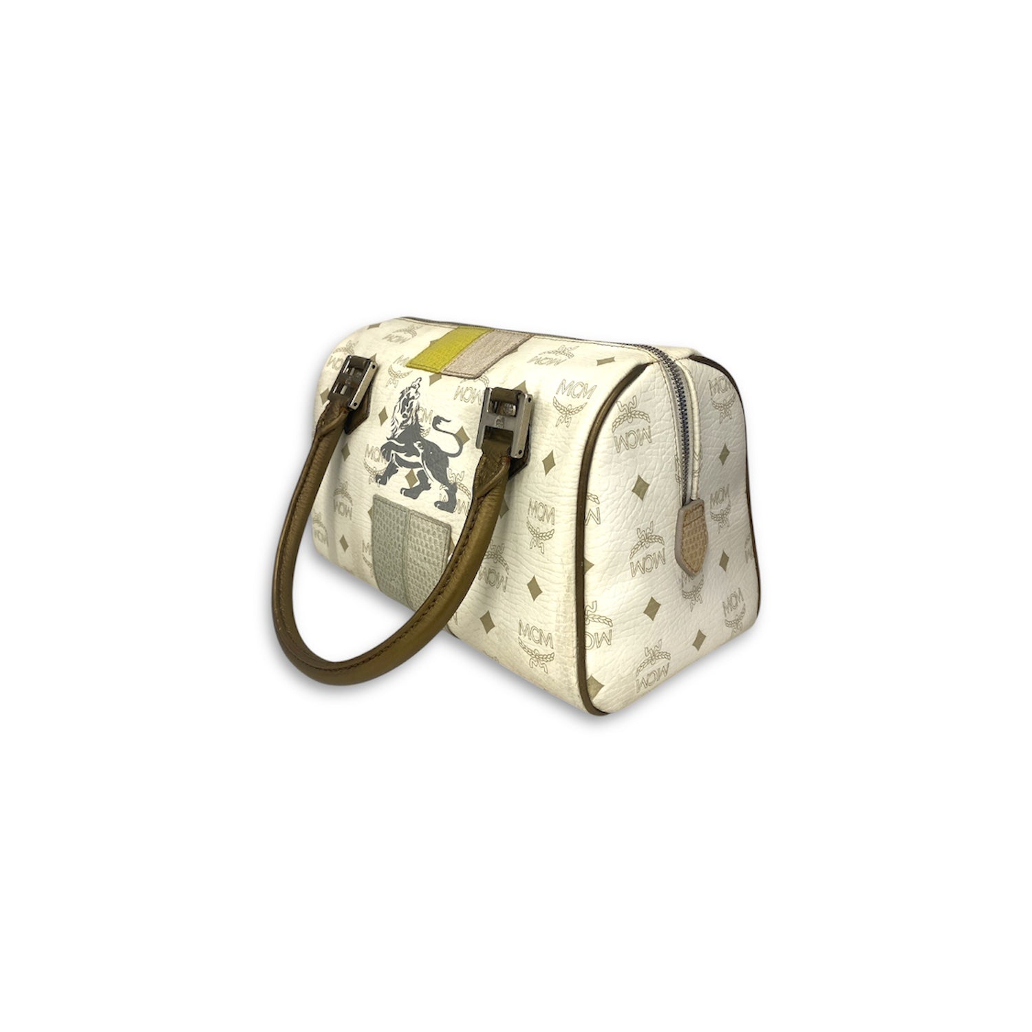 MCM Boston Bag Ivory/Brown MMK5SVE92LE001 Stain Rank B